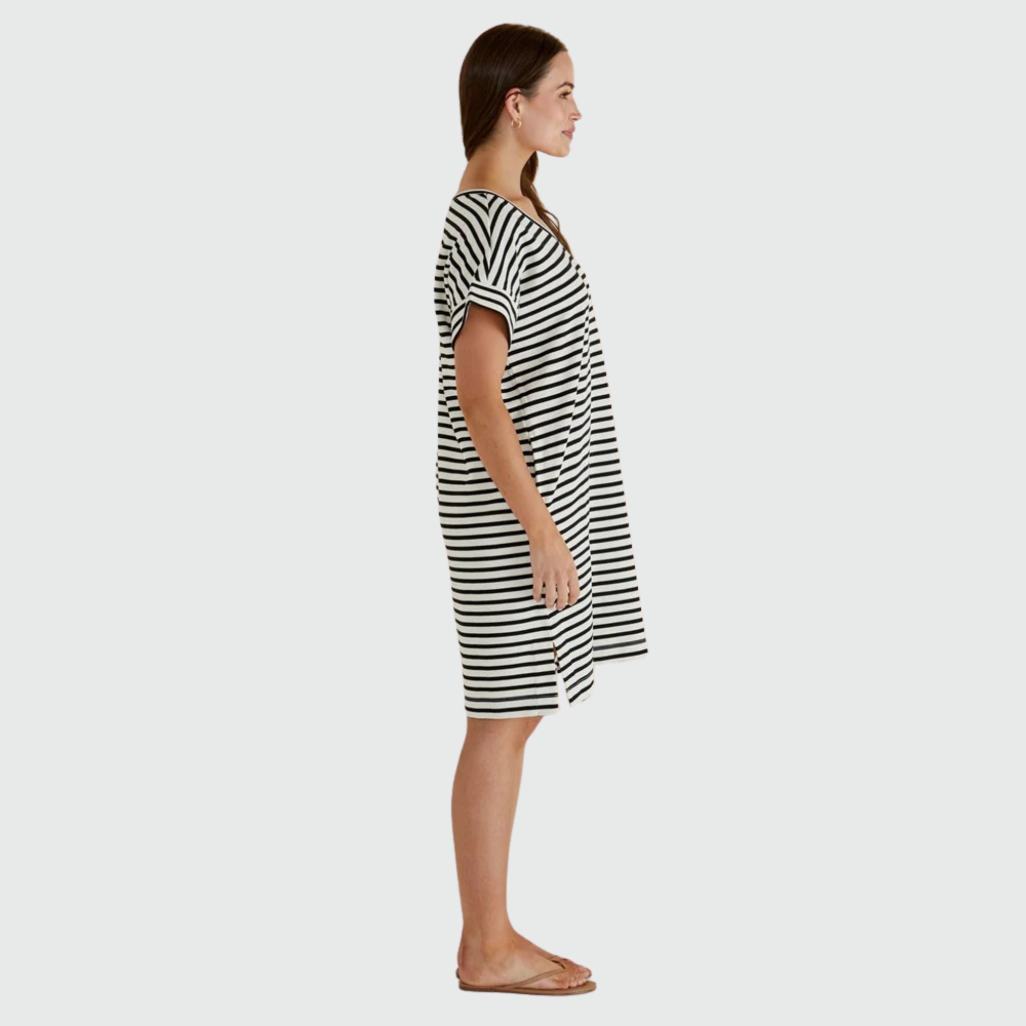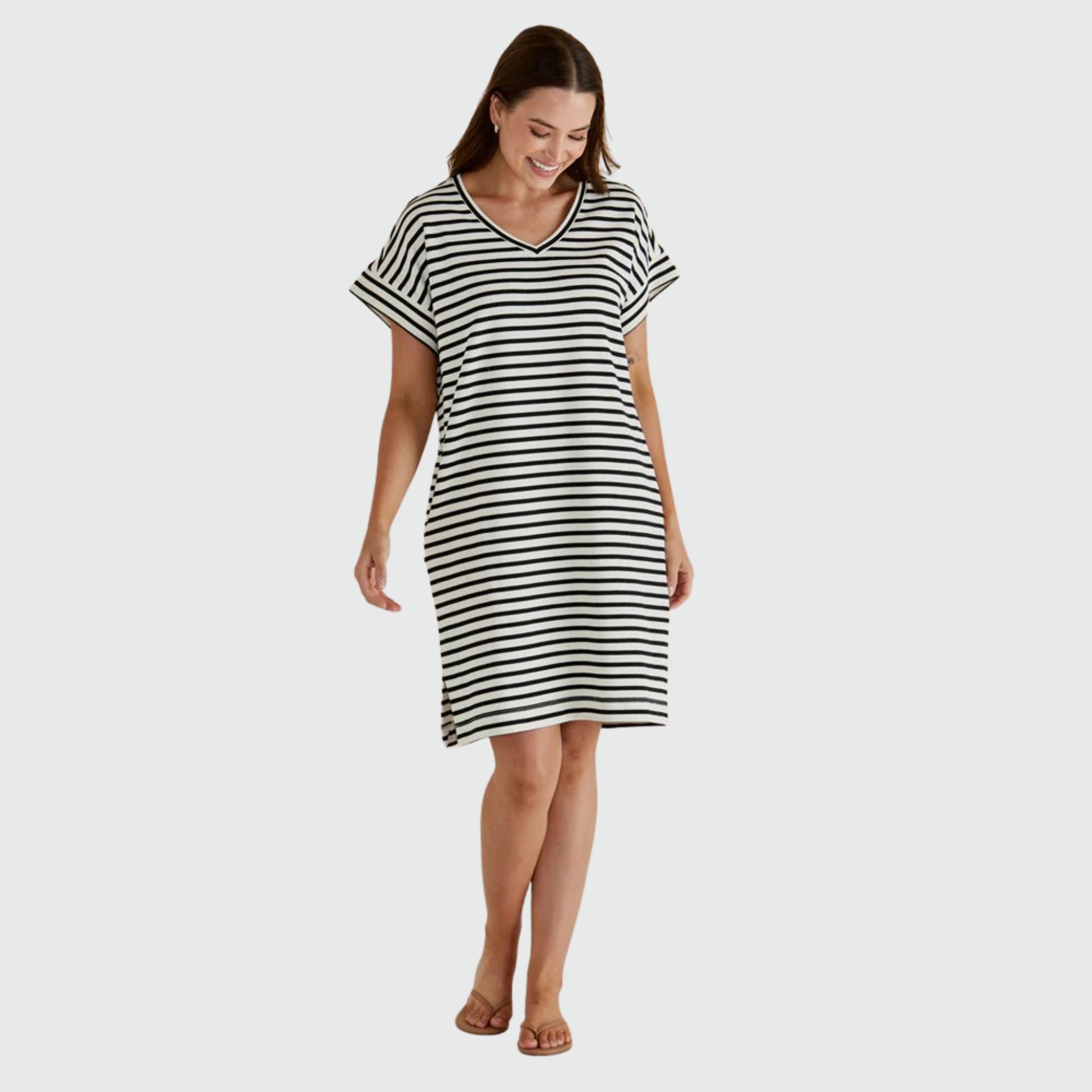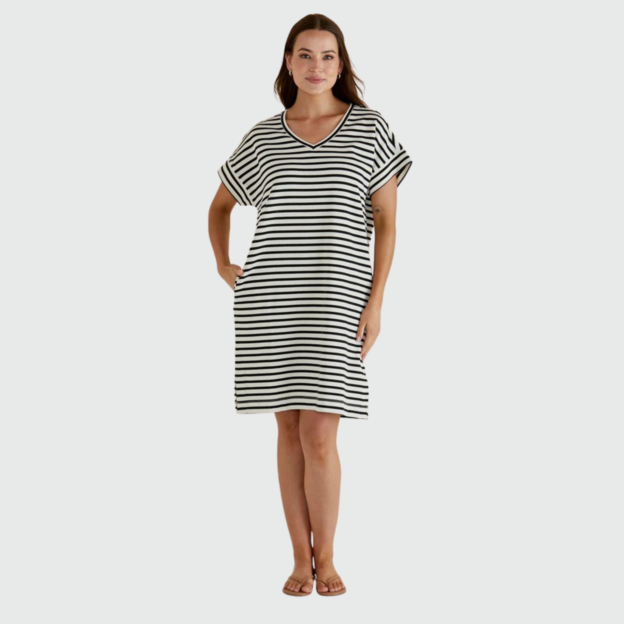 Effortless elegance meets everyday comfort 💕 The Elise V-Neck Rib Dress is designed for a relaxed, flattering fit - featuring a classic V-neckline, chic cap cuff sleeves, and practical side pockets. With soft stretch cotton and side splits for easy movement, this dress is your perfect transeasonal staple.
