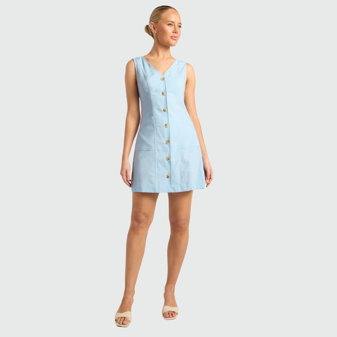 Meet your new spring statement piece โ the Blue Vest Dress with elevated contrast stitching. Crafted from a breathable cotton-linen blend, this dress combines comfort with effortless sophistication.